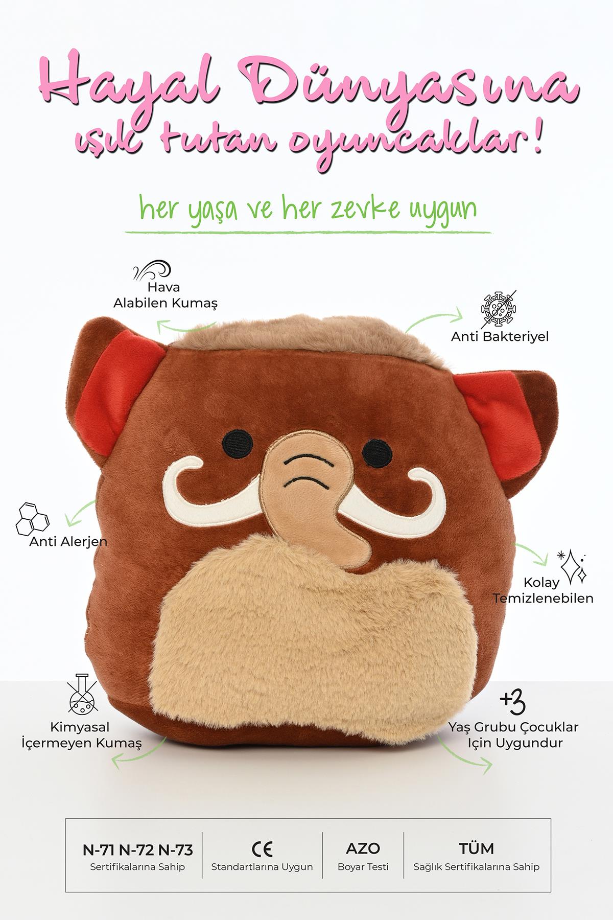 30 CM FİGÜRLÜ PELUŞ YASTIK SERİSİ (3097-MAMUT-KAHVE-30)